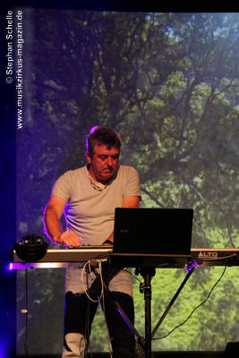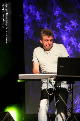Los ging es aber zunächst mit dem zehnminütigen Titelstück von John’s letztem Studioalbum „Darklight“ aus dem Jahr 2009. Eine Frauenstimme aus dem Off sprach zunächst einige Textpassagen, die durch warme Synthieflächen unterlegt waren. John’s Stil ist unverkennbar, denn seine Sounds sind einzigartig und können schon vom ersten Klang an identifiziert werden, so auch bei diesem Stück. John kombinierte seinen ganz eigenen Stil mit Klängen die unter anderem an Tangerine Dream erinnerten.