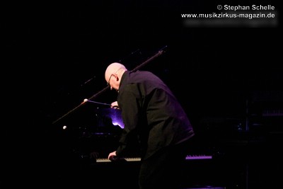 Bei der ersten Zugabe „Still Loving You, Still Missing You” hatte dann John Kerr wieder seinen Einsatz am Flügel. Eine Hälfte des Track spielte er dort Solo und wechselte nach einigen Momenten an sein Keyboard mit den Worten: „Was mache ich eigentlich hier? Spiele an einem Grand Piano, obwohl es sich hier doch um eine Elektronikkonzert handelt.“ Und so spielte er den zweiten Part dieses Stückes an seinem Keyboard. Darauf folgte mit „The Final Juxtaposition“ eine letzte Zugabe, die wieder sehr rhythmisch angelegt war.