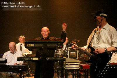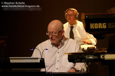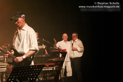 Neben John und Ron waren zahlreiche Gastmusiker mit auf der Bühne, die die beiden sehr druckvoll unterstützten. Neben Schlagzeuger Harold van der Heijden, dem jungen Keyboarder Jeffrey „Synthex“ Haster und dem Gitarristen Frank „F.D. Project“ Dorittke hatten sie mit Bas Broekhuis (Perkussion, Electronics) und dem Briten John Dyson (Keyboards) gegenüber dem Bochum-Gig noch zwei weitere Musiker auf der Bühne. Dadurch wurde das Konzert aber mehr zu einem Ron Boots, John Kerr & Friends-Konzert.