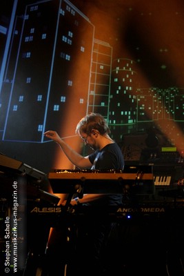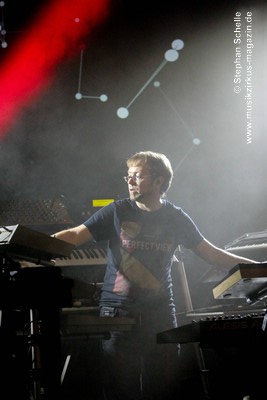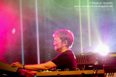 Neben eigenen Stücken huldigte Kebu auch einigen bekannten Größen aus der Instrumentalmusik. So hatte er mit „Pulsar“ ein Stück im Programm, das stark an Jean Michel Jarre angelehnt war. Zusätzlich hatte er noch Coverversionen von Vangelis‘ „Bladerunner“, Tangerine Dream‘s „Le Parc (Streethawk)“ und „Chase“ von Giorgio Moroder, einem Stück das Moroder für den Film „Midnight Express“ komponierte, in seinem Set. Und als krönenden Abschluss spielte er dann noch als Zugabe eine powervolle Version von Jan Hammer’s „Crocket’s Theme“, der Titelmelodie aus „Miami Vice“. All diesen Stücken drückte er seine ganz eigene Handschrift auf, ohne sich zu weit vom Original zu entfernen.