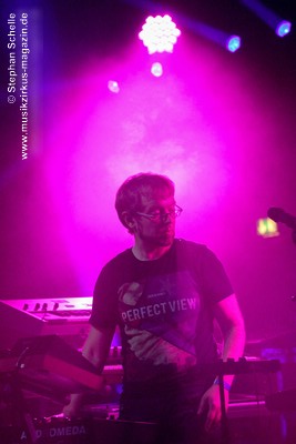 Sebastian Teir aus Finnland, der als Kebu firmiert, ist bekannt für seine außergewöhnlichen Shows. Neben einer tollen Lightperformance ist es vor allem die Tatsache, dass Kebu außer einigen Rhythmen aus den Sequenzern alles live auf seinen analogen Synthesizern spielt. Davon konnten sich auch die Besucher beim Electronic Circus 2017 überzeugen. Wie er sagt geht er bei seinen Konzerten ein gewisses Risiko ein, da er „ohne Backup“ agiert. Aber genau das sowie seine eingängige und rhythmische Musik machen die Liveatmosphäre bei ihm aus.