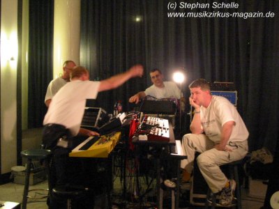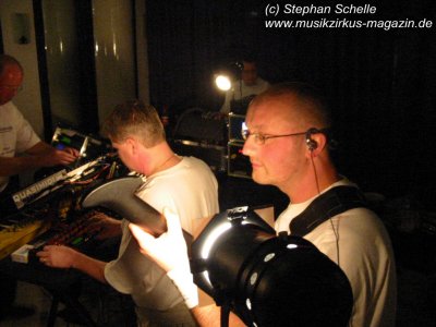 Mario und Detlef an ihren Geräten herum um ihnen die irrsten Rhythmen und