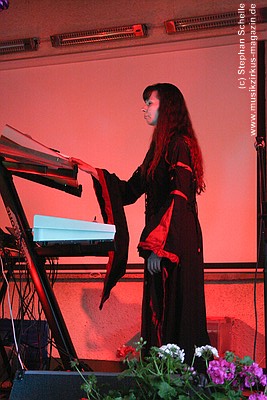 hinter ihre Keyboards. Ihr Outfit stand damit in einem Kontrast zu den