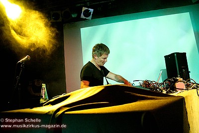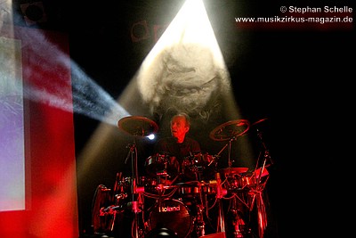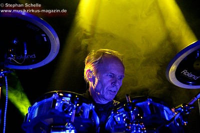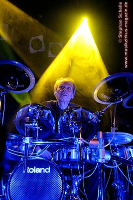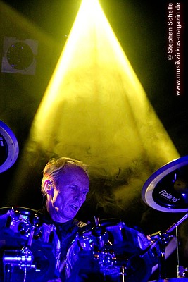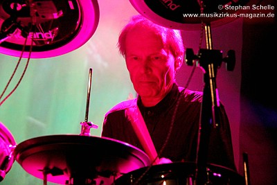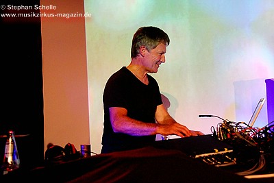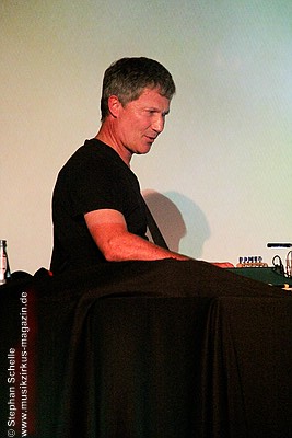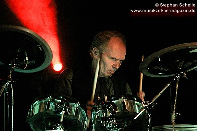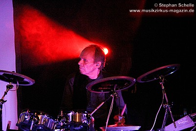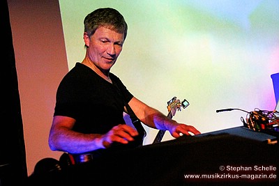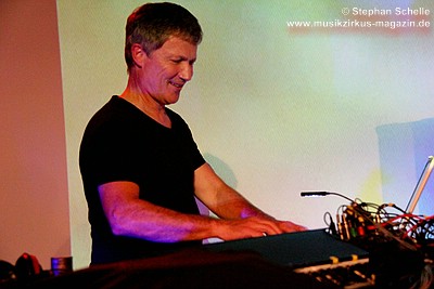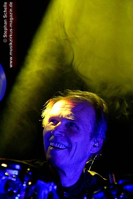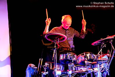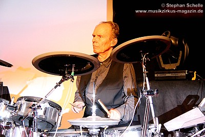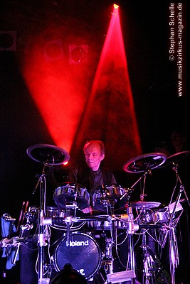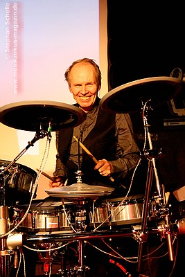 Hans Lampe so mit seinem elektronischen Schlagzeug positioniert, das man