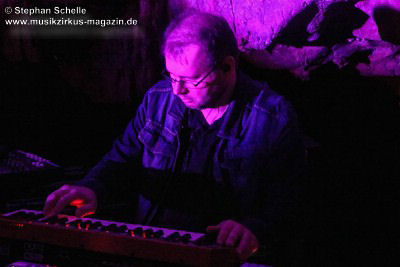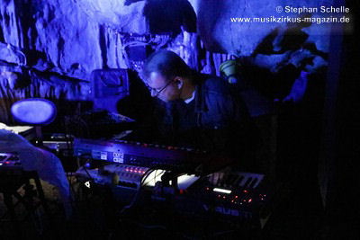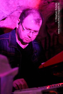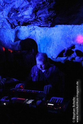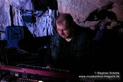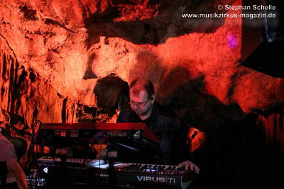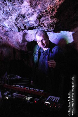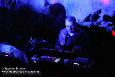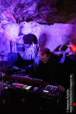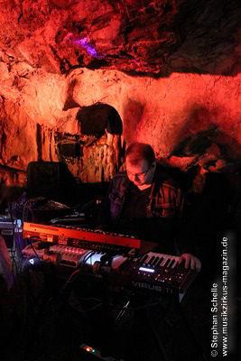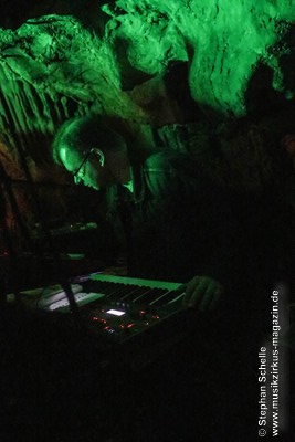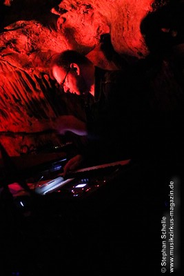 Andreas präsentierte sehr rhythmische, melodische Musik. Den Beginn machte das gut zehnminütige Stück „KLE“. Pulsierende Rhythmen legten den Grundstock für seine Harmonien, die er aufeinander schichtete um dann nach einigen Momenten noch eine eingängige Melodielinie hinzuzufügen. Das ging gut ins Ohr, passte gut in die Tropfsteinhöhle und macht Appetit auf mehr.