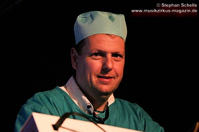 Moderator Frank sich in einen Arztkittel gekleidet und ließ sich von