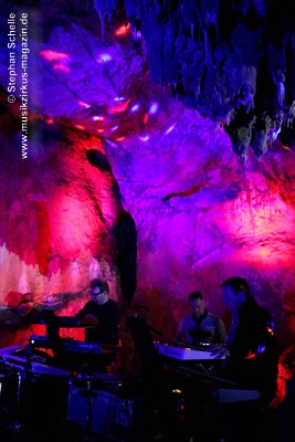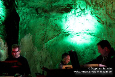 Wie schon in den Jahren zuvor waren Pyramid Peak wieder eine Bank in der Tropfsteinhöhle. Mit ihren majestätischen und erhabenen Klangskulpturen brachten die Drei ein ums andere Mal die Tropfsteine zum Schwingen.