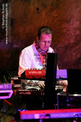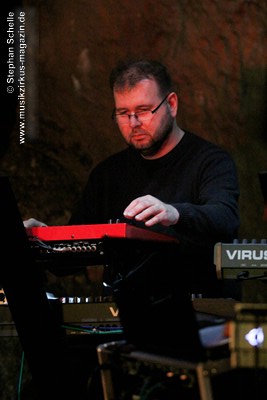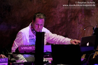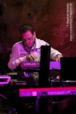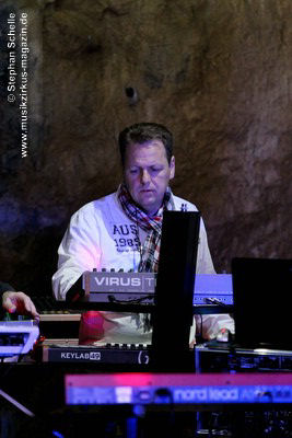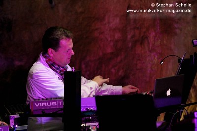 Mit helleren Klangfarben begann dann Track Nummer Zwei. Wunderschöne Harmonien schwebten durch die Grotte und prallten von den Wänden ab, was einen tollen Klang ergab. Eine verträumte Melodie wurde dann von Axel auf diese eingängigen Flächen gelegt. Nach einigen Minuten kamen verschiedene, teils verzerrte und mit Echo belegte Stimmen hinzu und sorgten so für eine ganz eigenartige Stimmung, die das sanft dahingleitende Stück langsam in einen rhythmischen Part überführten. Es gab noch weitere Breaks und Strukturwechsel in diesem abwechslungsreichen Stück.
