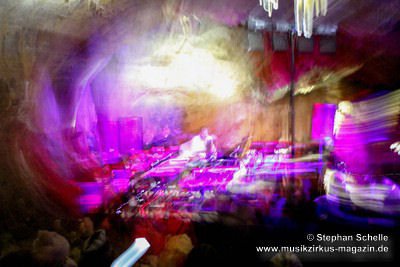 Den krönenden Abschluss bot dann noch eine etwa viertelstündige Zugabe, die aus einer Jamsession aller beteiligten Musiker bestand. Pyramid Peak und BK&S legten mit einer Improvisation los, bei der deutlich herauszuhören war, dass BK&S den Ton angaben bzw. die Basics vorberietet hatten. Der Track bestand aus hypnotischen Beats auf denen Bas weitere rhythmische Elemente legte und die anderen Vier dann Harmonien spielten. Diese Session kam besonders gut beim Publikum an, das nach gut zweieinhalb Stunden Musik wieder ans Tageslicht durfte. Na gut, Tageslicht ist übertrieben, denn draußen war es schon finster. Ein tolles Konzert in einer herausragenden Location, das man mal besucht haben sollte.