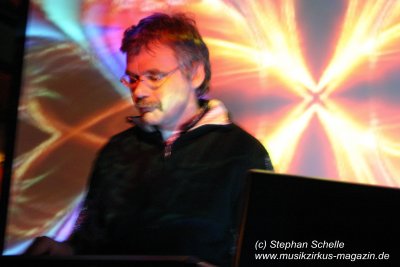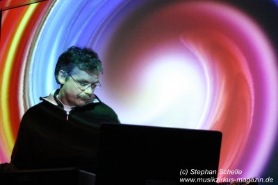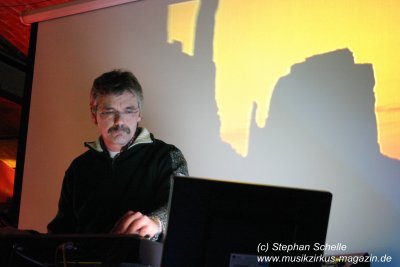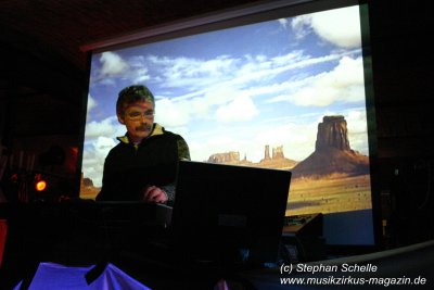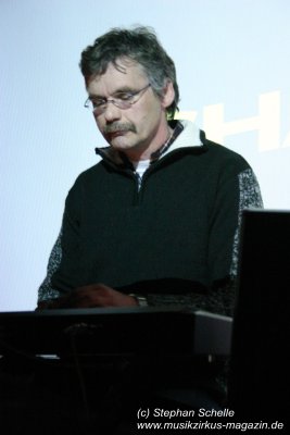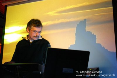 Allein mit seinen Keyboards hatte er sich vor einer Leinwand am