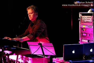 er hinter einer Burg aus Keyboards und weiteren Gerätschaften. Da kam zwar