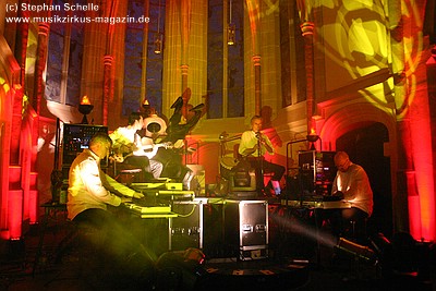 nur zu diesen speziellen Konzerten mit den drei Elektronikern zusammen.