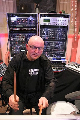 der sehr akzentuiert an seinem elektronischern Schlagzeug die