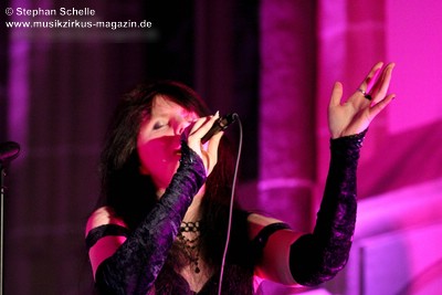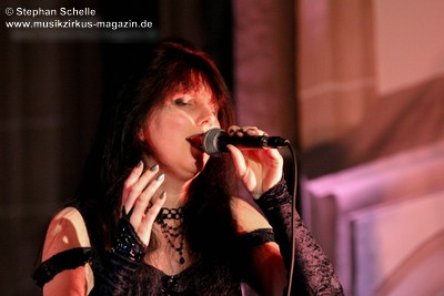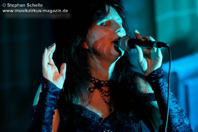 In ihrem gut 75minütigen Auftritt lag der Fokus mit ca. 50 Minuten auf dem Album "Prophecy", das den Untertitel "A Journey From The Ocean To The Stars" trägt. Gegen 19:30 Uhr starteten die beiden in ihr Set und lieferten atmosphärische Elektronik zwischen "Berliner Schule" im Stil von Klaus Schulze und den typischen britischen Sounds der Marke David Wright. Das Ganze würzten die beiden durch den Gesang Carys, die ihre Stimme hauptsächlich als Instrument einsetzte, denn sie sang im Wesentlichen keinen Text sondern eher Laute. Das kam mal folkig (leicht keltisch angehaucht), dann wieder arienhaft rüber. Zwischendurch sprach sie auch einige Texte.