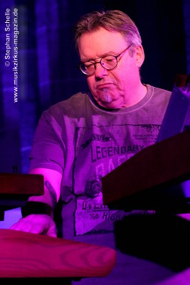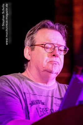 Ron Boots absolvierte an diesem Abend sein Set allein. Normalerweise begleitet ihn seit Jahren sein Freund, der Schlagzeuger Harold van der Heijden und auch Frank Dorittke aka F.D. Project sorgt seit langem live mit seiner E-Gitarre für weitere Akzente. Da aber, wie Ron sagte, auf der Bühne zu wenig Platz für einen der beiden bzw. beide ist, musste er allein den Abend bestreiten. Dieses vermeintliche Manko schmälerte den Genuss an seinem Auftritt aber keineswegs.