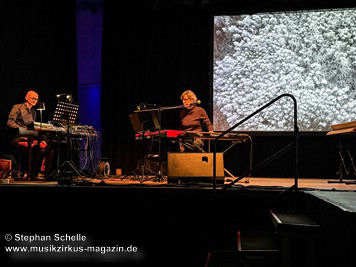 Und genau das vermochten auch die Beiden bei ihrem Konzert rüberzubringen, denn Musik und Texte bildeten eine Einheit und waren durchzogen von zarten Harmonien und Melodien, die gut zu den Texten passten (der von Christoph Danne gesprochene Text wurde zur Musik eingespielt). Die Besucher waren sichtlich von dieser poetisch/musikalischen Kombination berührt. Aber auch rhythmische Passagen fanden sich in den Stücken wieder.