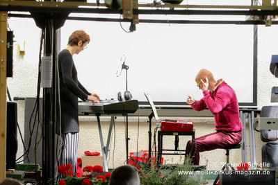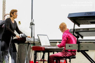 Als zweites war dann das Duo Rike Casper und Erik Mattheisen, die unter dem Titel RIKEERIK firmieren, an der Reihe. Außer den rhythmischen Elementen wurde alles von den beiden live gespielt, was man als Zuschauer besonders gut sehen konnte, da ihre Keyboards seitlich zum Publikum aufgebaut waren.