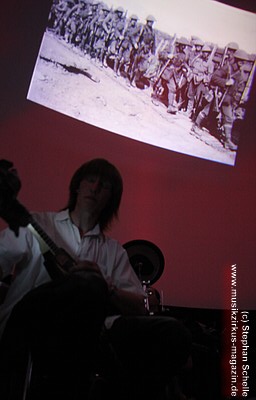 wurde, unterlegte er visuell mit vielen Bildern aus diesem Krieg. Wer