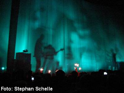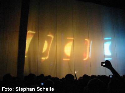 aktuellen CD „Tag und Nacht“ auf den Bühnenvorhang projiziert. Der