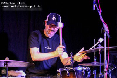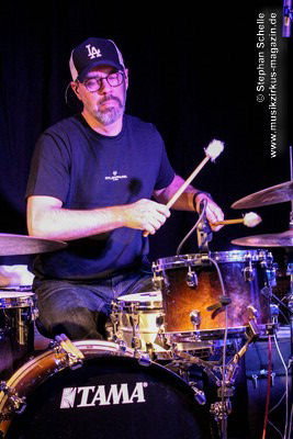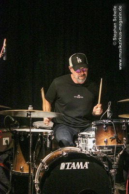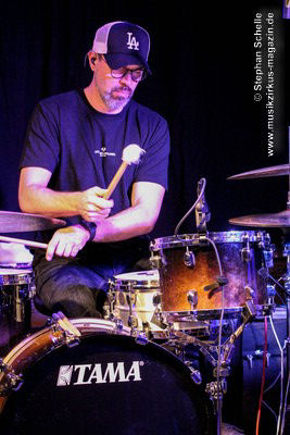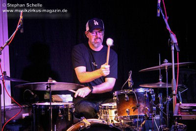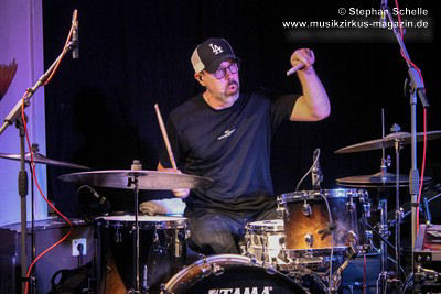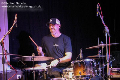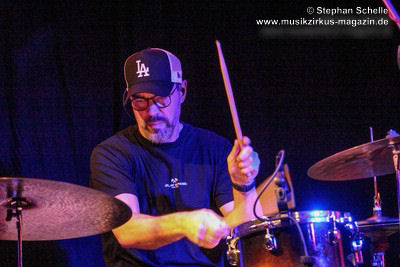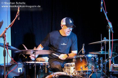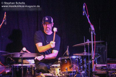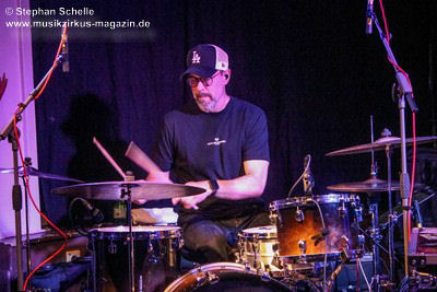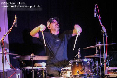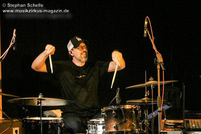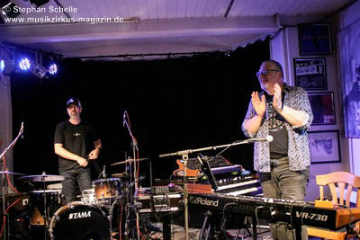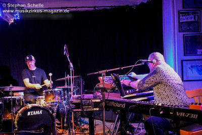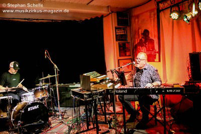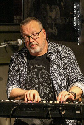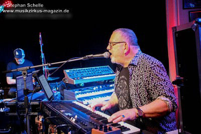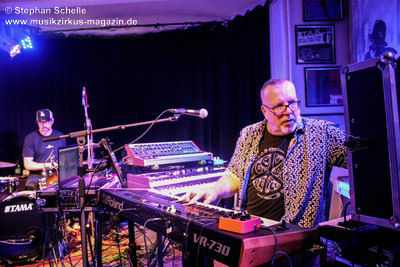 Nach einer kurzen Pause ging es dann im zweiten Teil als S.o.P. weiter, zu dem dann auch Schlagzeuger Tommy Fischer mit auf die Bühne kam. Das Set bestand aus Stücken ihrer beiden Alben „Cosmic Tales“ und „Voyage“ sowie dem Stück „Am Strand“ von der EP „Bitte recht freundlich“ von Franks Projekt Der Tiefe Raum. Neben Instrumentalstücken befanden sich auch einige von Frank Tischer gesungene Stücke in ihrem Programm. Nun wurde elektronische Musik mit Rockmusik kombiniert und ging mit dem tollen Schlagzeugspiel von Tommy steil nach oben. Es war unglaublich was diese beiden Musiker da für einen Sound und Groove raushauten.