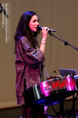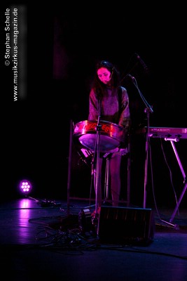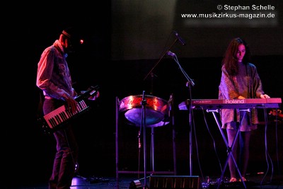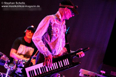 Mit „Eternally Revolving“ hatten sie dann noch eine sanfte Popnummer im Programm, bei der Lilli ans Mikro wechselte. Dieser Track hatte Songcharakter und stach damit noch weiter aus dem Set heraus. Zur Electropop-Nummer „Love Machine“ wechselte Lilli dann ans tragbare Keyboard und sorgte mit einem durch Vocoder verfremdeten Gesang für eine weitere Note. Im Song „Welcome To Love“ spielte sie dann auf der Steeldrum. Die beiden beliebtesten Stücke der Band, „Onyx“ und „Cosmic Chicken“, wurden ein zweites Mal gespielt und bildeten dann als Zugabe den würdigen Abschluss.