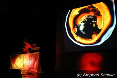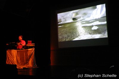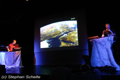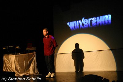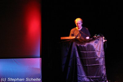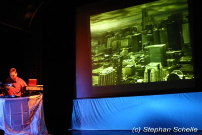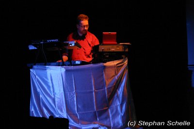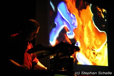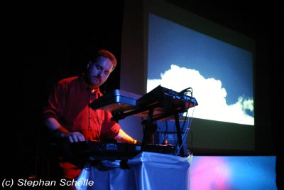 Er präsentierte einen Querschnitt seiner bisherigen Veröffentlichungen. Das Ganze war sehr melodiös und ebenfalls mit einer gehörigen Portion Rhythmus (sprich bpm) versehen. Die Musik machte wirklich Laune und ließ die Glieder nicht zur Ruhe kommen, denn man war sich ständig im Takt am bewegen. Eigentlich hätte man auch darauf tanzen können. Dazu projizierte Stefan auf die Rückwand der Bühne Filmmaterial, das er exakt auf die einzelnen Stücke zugeschnitten hatte.