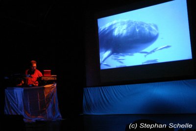 Anfangs sorgten Computeranimationen für einen Flug durch futuristische Städte (erinnerte mich ein wenig an Blade Runner) und durchs All. Computer animierte Filme (Weltall, Landschaften, grafische Spielereien) wechselten sich mit herrlichen Naturaufnahmen ab (z. B. Wasserfälle, Eisberge, Unterwasseraufnahmen). Je nach Stimmung der Songs, manchmal produzierte Stefan auch schwebende Klänge, die aber immer mit einem flotten Rhythmus unterlegt waren, wechselten die Bilder, so zum Beispiel bei „Underwater Information“ von seiner „The Light Of Sirius“-CD, bei dem man Wale durchs Wasser gleiten sah. Auch Stefan hatte einen in zwei Sets aufgeteilten Auftritt. Den ersten hatte er bereits eine Woche zuvor beim Open Air-Festival in Broich aufgeführt.