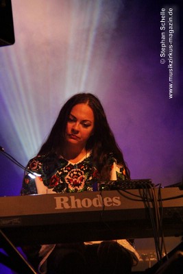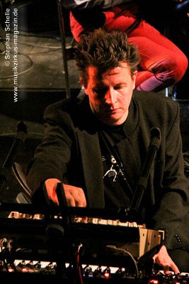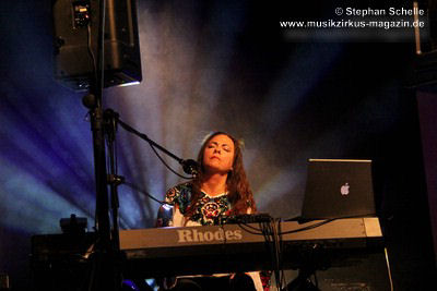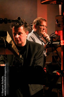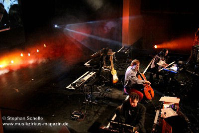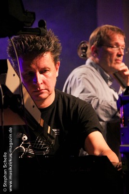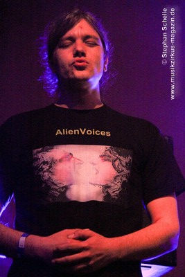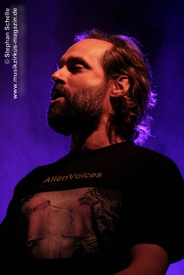 Weitere improvisierte Tracks folgten. Manchmal melodisch oder treibend, dann wieder verstörend und melancholisch wirkten die Stücke, übten aber eine ungemein faszinierende Stimmung im Publikum aus. Es ist bezeichnend für die fesselnde Musik des Trios, dass die Ränge im Publikum während des kompletten Konzertes, das nicht immer einfach zu konsumieren war, besetzt blieben. Aber wie sagte Frank Gerber am Ende des Festivals so treffend: „Diese Art von Musik muss die Szene aushalten können.“ Recht hat er, denn sie bereichert das Genre und zeigt darüber hinaus neue Wege auf.