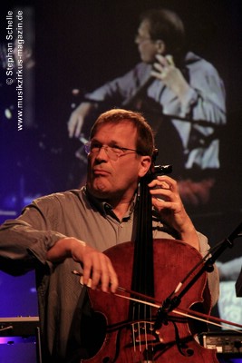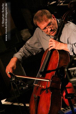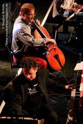 Beim ersten Stück, dem Titeltrack seines aktuellsten Albums „Staub“, steuerte er Samples und Rhythmen mit einem Sequenzer auf seinem Computer, während Roksana herrliche, melodische, teils klassische Pianomotive beisteuerte. Das würzte Thilo dann mit improvisierten, akzentuiert und auch experimentell gesetzten Klängen seines Cellos. Dabei strich er nicht nur über die Saiten seines Instrumentes sondern zupfte sie auch oder bearbeitete sein Musikinstrument rhythmisch.