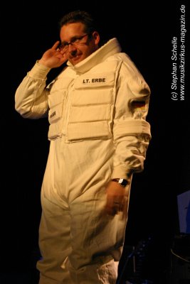 Astronautenanzug mit der Aufschrift „Lt. Erbe“ auf die Bühne. In dieser
