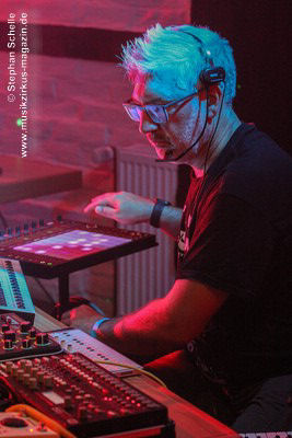 Es folgten zwei Stücke von dem Musikprojekt Baltes&Erbe, das Steve seit Jahren zusammen mit Stefan Erbe bildet. Der erste Track war „Sepia“ vom Album „s-thetic“. Ein ruhiges Stück, das er immer gerne live gespielt hat. Das spacige Intro hat Steve hierbei etwas kürzer gewählt. Die herrlichen Rhythmusmuster trieben diesen Track nach vorn, auf den Steve dann herrliche Sequenzen legte. Dem schloss sich dann mit „Gradient“ vom Album „Electric Garden“ ein weiterer Track an, der vom Projekt Baltes&Erbe stammte. Steve hat für die Interpretation der beiden Stücke eine neue Drummachine und ein leicht anderes Setup verwendet, daher waren die Stücke ein wenig rhythmischer. Darüber hinaus hat er ein paar neue Sequencer-Linien hinzugefügt und die Abläufe variiert.