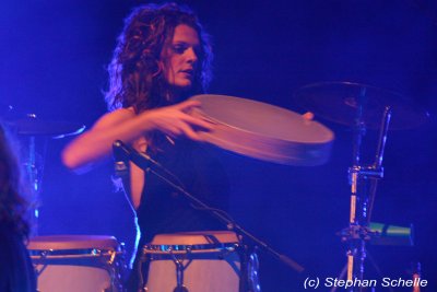 ihren Rhythmusinstrumenten wieder richtig ab. Die Frau hat eine Energie,