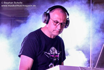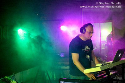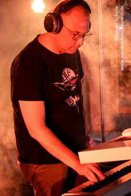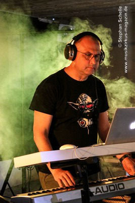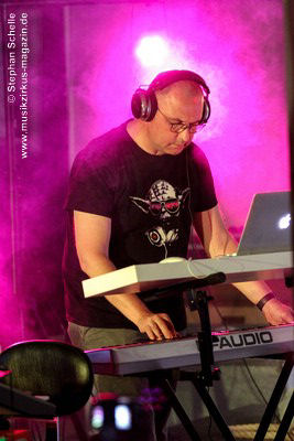 Den Start in das Festival machte der Elektronikmusiker Tilo Voigthaus mit seinem Soloprogramm. Bereits 1976 trat er in Kontakt mit elektronischer Musik und lernte als Teenager das Klavierspielen. Die magischen Klänge von J.M. Jarre, Vangelis, Tangerine Dream, Enya, Trevor Horn und Michael Cretu veranlassten ihn dazu, 1985 seinen ersten Synthesizer inkl. Drummachine zu erwerben. Freunde der Elektronikmusik werden ihn durch seine Zusammenarbeit mit Erik Matheisen (er war an diesem Tag unter den Zuschauern) kennen. Die Beiden gründeten das sehr erfolgreiche Duo Coral Cave. Unter diesem Projektnamen veröffentlichten die beiden Musiker seit 1991 herausragende Alben und gastierten 2011 auf „Winnies Gartenparty“. Seit 2001 produziert Tilo Voigthaus Soloalben und hat 2023 sein letztes Album „Private Investigations“ herausgebracht.