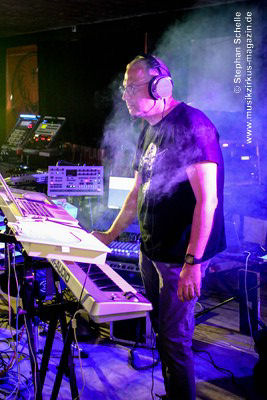 Tilo begann mit dem Stück „Eye Of The Past“, das im Internet schon recht erfolgreich ist. Das Stück hat Tilo 2020 auf seinem Album „X3“ veröffentlicht. Futuristische Sounds führten in diesen Track, der nach wenigen Momenten mit einem Sequenzerrhythmus und einer sehr schönen Pianomelodie fortgeführt wurde. Schnell fügte sich auch noch ein Rhythmus aus dem Drumcomputer ein. Ein wunderbarer, melodischer Track, der sich sofort im Ohr festsetzte.