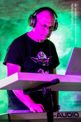 Tilo hat seine analogen Gerätschaften vor Jahren in seinem Lager abgestellt und fokussiert sich nur noch auf ein Keyboard und einen Rechner (Software). Bisher hat er eine ganze Reihe an Alben eingespielt, die über sein Bandcampprofil abgerufen und erworben werden können. Das macht es Musikern heute einfacher und vor allem reduziert es das finanzielle Risiko, was man sonst eingehen müsste, um Alben pressen zu lassen. In Borgholzhausen hatte er fünf Stücke aus verschiedenen Alben im Programm, von denen ein Stück aus vier Parts seines Albums „Under The Surface“ bestand. Die Stücke, die Tilo gespielt hat, sind am Folgetag auch schon bei Bandcamp als Album „Borgholzhausen 24-06-2023“ erschienen.