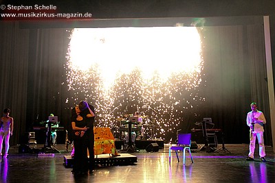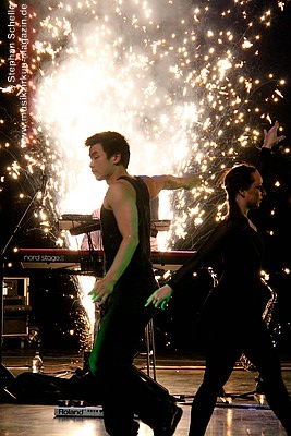 sich durch Nebelschwaden zogen und pyrotechnische Einlagen wie brennende
