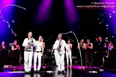 Andreas Saxophon spielend quer über die Bühne zu Leyla. Die beiden