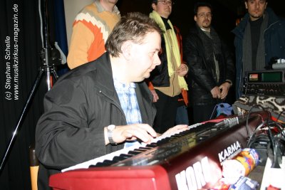 Vorhang wieder öffnen und so umringten ca. 30 Fans die Keyboards und das