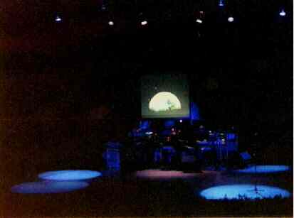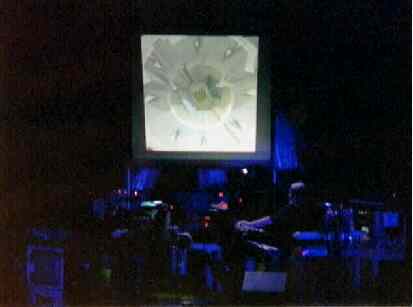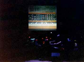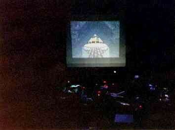 Videoleinwand aufgebaut, auf der perfekt zur Musik Computeranimationen erster Güte