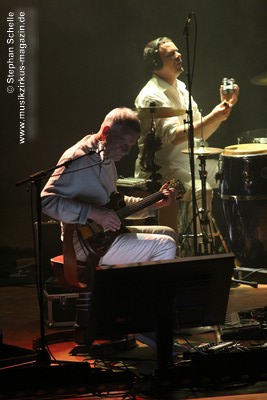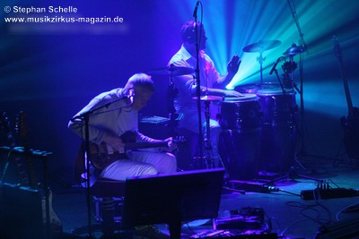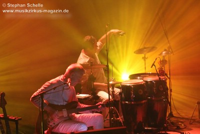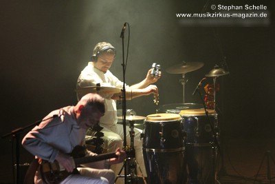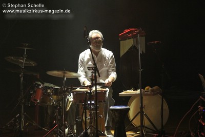 Die fünf Musiker hatten so richtig Spaß bei ihrem Gig, allen voran Achim Reichel selbst, denn sie schienen sich in ihre Klanglandschaften und den treibenden Rhythmen förmlich zu verlieren und mit ihnen zu verschmelzen. Während eines Stückes legten die beiden Perkussionisten Yogi Jockusch und Olaf Casalich ein tolles Solo hin, bei dem sie an ihren Instrumenten eine Konversation eingingen, bei der jeder auf den jeweils anderen rhythmisch zu antworten schien. Achim Reichel legte währenddessen bei diesem Solo ein kleines Tänzchen ein, was den Spaß am Gig und der Musik deutlich machte.
