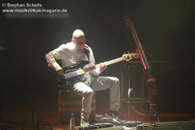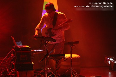 Achim spielte auf seiner Gitarre die unterschiedlichsten Elemente, die mal psychedelisch, rockig, ambient, rhythmisch, funkig und sogar Reggae-like klangen. Dabei unterstützten er und Nils Hoffmann sich an den Gitarren perfekt. Aber es kamen auch einige Sounds aus dem Rechner und vervollständigten so das Gesamtbild.