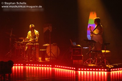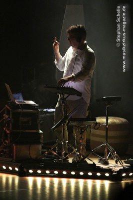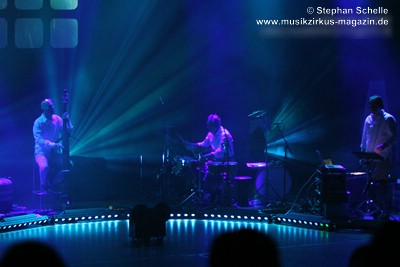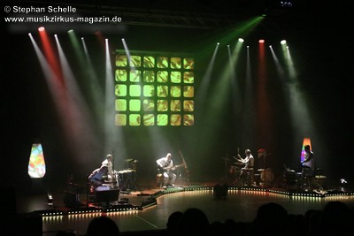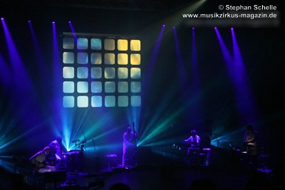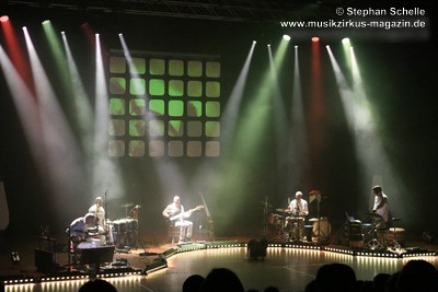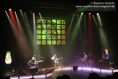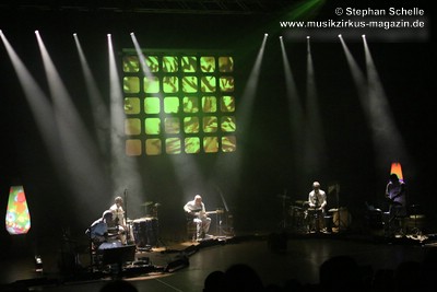 Die Stücke durchzogen aber auch immer Harmonien, so dass die Musik nicht verkopft wirkte sondern eine hypnotische Ausstrahlung hatte, in die man als Zuschauer unweigerlich hineingezogen wurde. Dazu wurden grafische Elemente, die auf einer aus 30 Quadraten bestehenden Leinwand im Hintergrund projiziert wurden sowie eine dezente Lightshow eingesetzt und rückten das musikalische Programm ins rechte Licht. Das war sehr ansprechend gemacht.