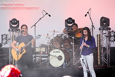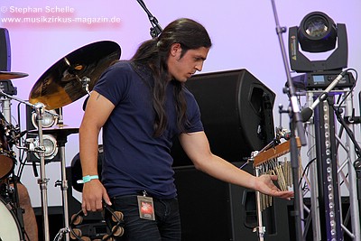 noch einen Perkussionisten mit dabei, der an einer Art Schlagzeug stehend zu
