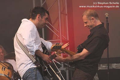 in die Seiten der Gitarre griffen und so weiterspielten. Das sah nicht nur