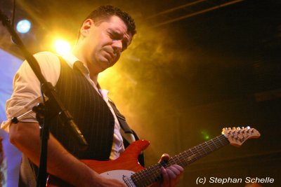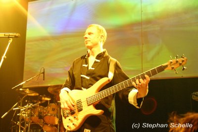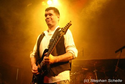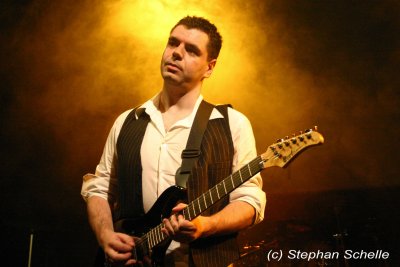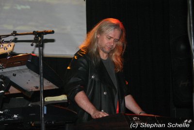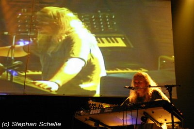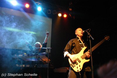 Anfangs noch abgeklärt und zu professionell, tauten sie im Laufe des Gigs immer mehr auf und zeigten, dass es ihnen doch ’ne Menge Spaß machte hier live zu spielen. Clive ging streckenweise ziemlich mit, was sich darin zeigte, dass er beim Keyboardspielen hinter seinen Tasteninstrumenten rumhüpfte. Auch wackelte er bedrohlich mit seinen Keyboards, so dass ich schon befürchtete, dass sie umkippen könnten. Clive, der bei Konzerten immer im langen schwarzen Ledermantel auftritt, betonte, dass es Zeit sei, für dieses Jubiläum sich des Kleidungsstückes zu entledigen, was seine Kollegen zu der Äußerung bewegte, dass es auch Zeit sei das Teil endlich mal zu reinigen.