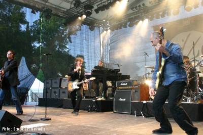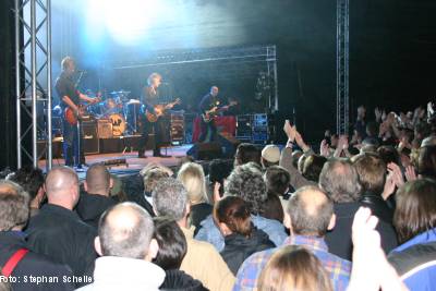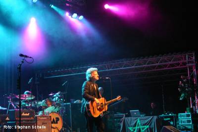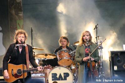 Gegen 20.15 Uhr begannen dann BAP mit ihrem dreistündigen Jubiläumskonzert, das aus 30 Songs aller bisher erschienenen Alben bestand. Von der Urbesetzung ist nur noch Wolfgang Niedecken übrig geblieben. Der nächste dienstälteste ist der Schlagzeuger Jürgen Zöller, der seit 1988 zur Band gehört. Daneben vervollständigten noch Helmut Krumminga (E- und Akustikgitarren), Werner Kopal (Bass) und Michael Nass (Keyboards) das Quintett. Die junge Geigerin Anne de Wolff sowie Julian Dawson wirkten bei dem Gig dann noch als Gastmusiker mit.