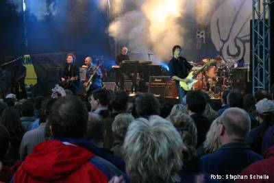 Wolfgang und seine Mitstreiter führten in nicht chronologischer Reihenfolge durch die 30 Jahre Bandgeschichte. Doch so richtig Stimmung wollte anfangs noch nicht aufkommen. Ob es an der doch recht kühlen Witterung, dem etwas sturen Sauerländer Gemüt oder durch das weite Areal, auf dem das Publikum etwas aufgelockert – statt wie in den Hallen der Republik eng gedrängt – verteilt stand, lag, kann ich nicht sagen. Vielleicht liegt es aber auch einfach nur daran, dass die neueren Songs nicht so zünden, wie es die Klassiker aus den 80’er tun.