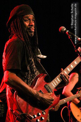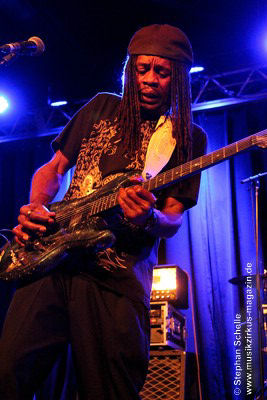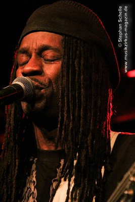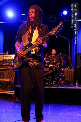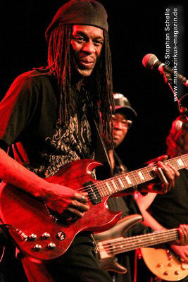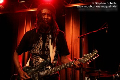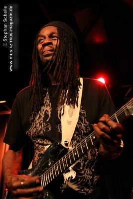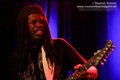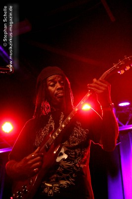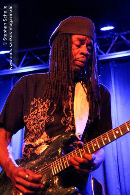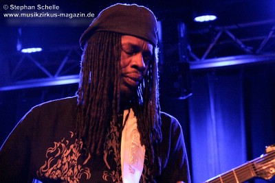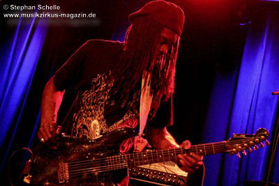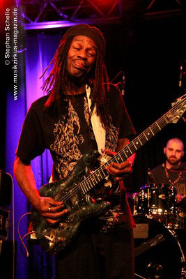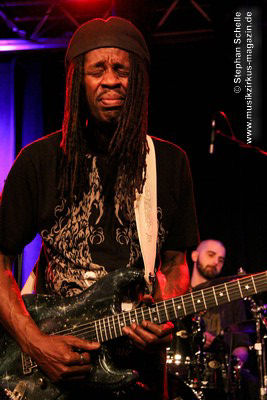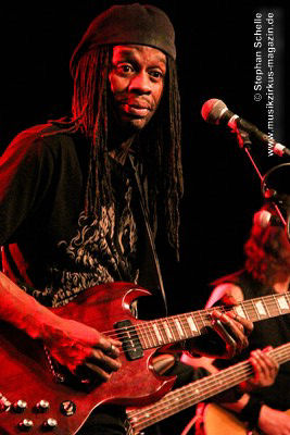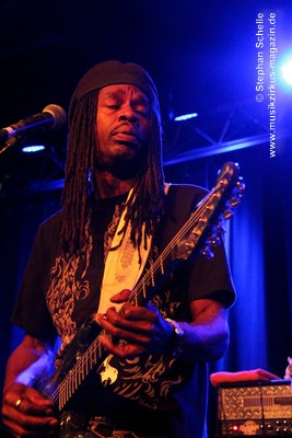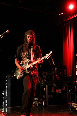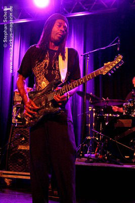 Funkig wurde es dann wieder im Song „Tired Of Tryin`“, bei dem Bernard wieder die unglaublichsten Sounds aus seiner Gitarre zauberte. So holte er einen Sound aus seiner E-Gitarre, der wie eine Orgel klang. Den nächsten Song „Sirious“ widmete er dann seinem bereits 1997 verstorbenen Vater, aus dessen Feder dieses Stück stammt. Dabei schaute er ein ums andere Mal gen Himmel, so als wolle er seinem Vater einen Gruß senden. Die sehr einfühlsame und faszinierende Version dieses Songs tat ihr übriges. Ein absoluter Gänsehaut erzeugender Titel, bei dem Bernard wieder ein traumhaftes Solo zum Besten gab.