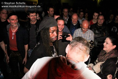 Als Zugabe gab es eine lange Version von „Just My Guitar And Me“, bei dem Bernard und Band in ganz unnachahmlicher Weise relaxte Melodien luftig locker in den Saal transportierten. Am Ende des Stückes gab es dann ein ganz besonderes Schmankerl, denn jeweils Michael und George kamen nacheinander zu Bernard an den Bühnenrand, der seine Gitarre so singen ließ, als würde er sich mit seinen Mitmusikern unterhalten. Die Mimik und Gestik von Bernard sowie Michael und George sorgte darüber hinaus für eine perfekte Illusion, denn man hatte das Gefühl, als würde hier tatsächlich eine Konversation zwischen den Musikern stattfinden. Das war dann dass Ende eines Energie geladenen und in jedem Moment faszinierenden gut zweieinhalbstündigen Konzertes, bei dem Bernard Allison Blues, Soul, Funk und Rock sowie eine Spur Boogie perfekt miteinander verschmelzen ließ. Wer die Chance hat diesen Ausnahmemusiker zu sehen, sollte diese unbedingt nutzen.
