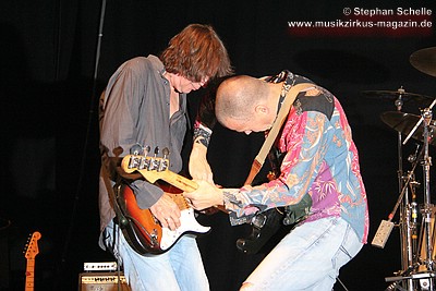 an Perkussioninstrumente wechselten. Und die beiden Gitarristen ließen